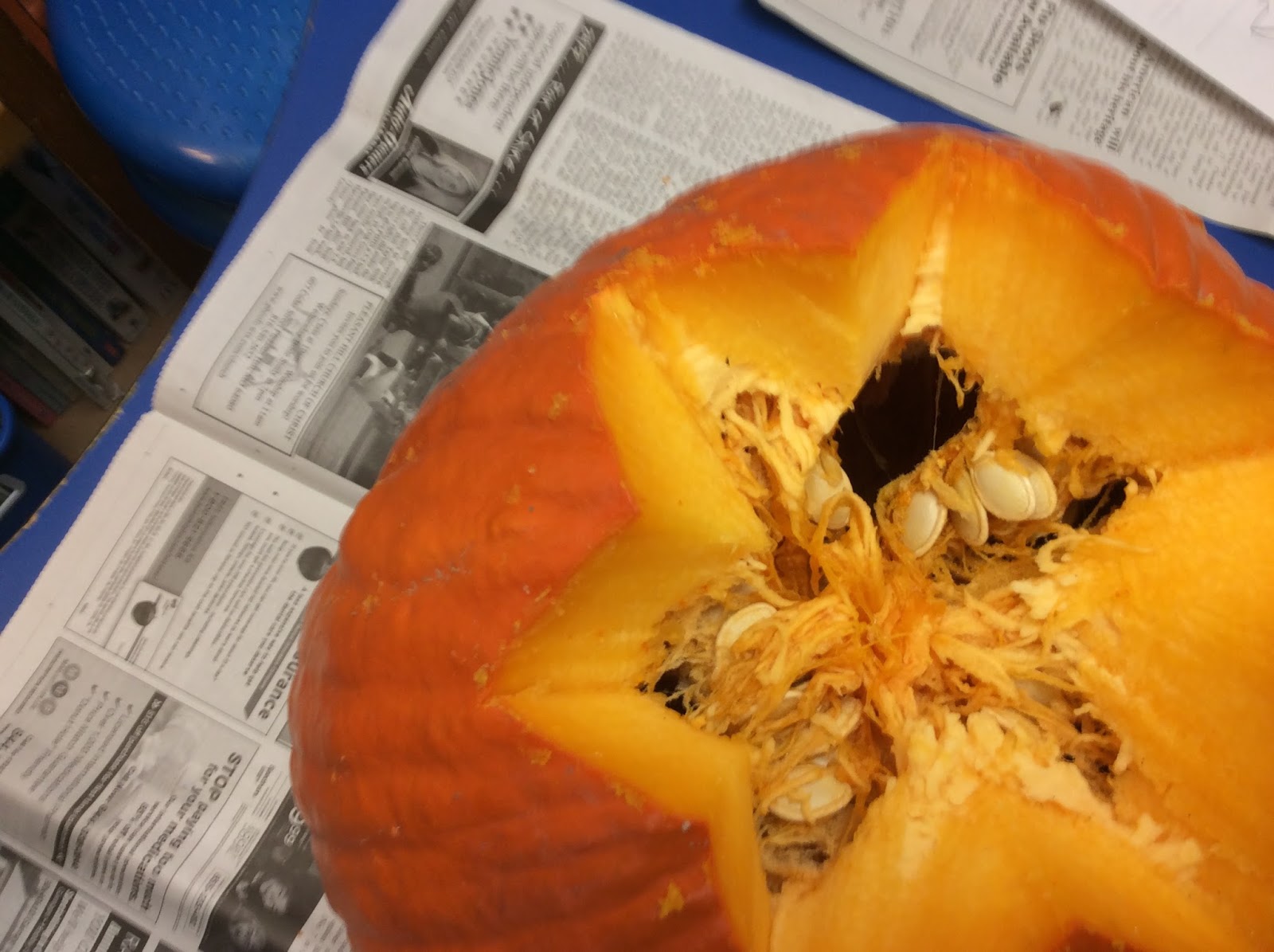 Ms. Darla carved the class pumpkin with our kids last Monday. The children voted on the type of face. You can see the kids had fun removing the netting and the seeds. Thanks, Ms. Darla!