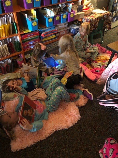 We celebrated Missouri Read In Day on Friday by wearing our pajamas, reading our favorite books, and sharing reading time with our friends! It was a great day filled with teachers reading aloud, student creations inspired by children's literature, and discussions of our favorite books. Please enjoy some of our writing in response to Dr. Seuss' books throughout this past week, and notice how the students were engaged in reading on Read In Day. What a great group of kindergartners your children are! Thank you so much for sending them prepared to enjoy the special day!